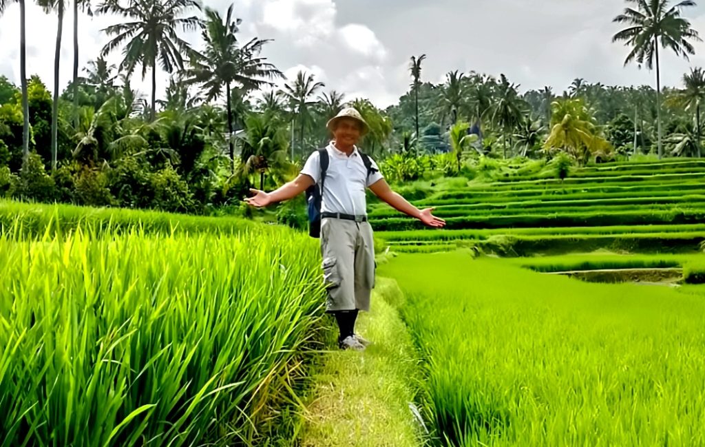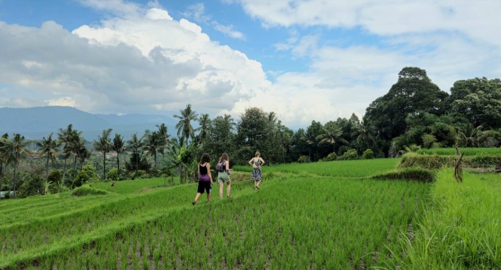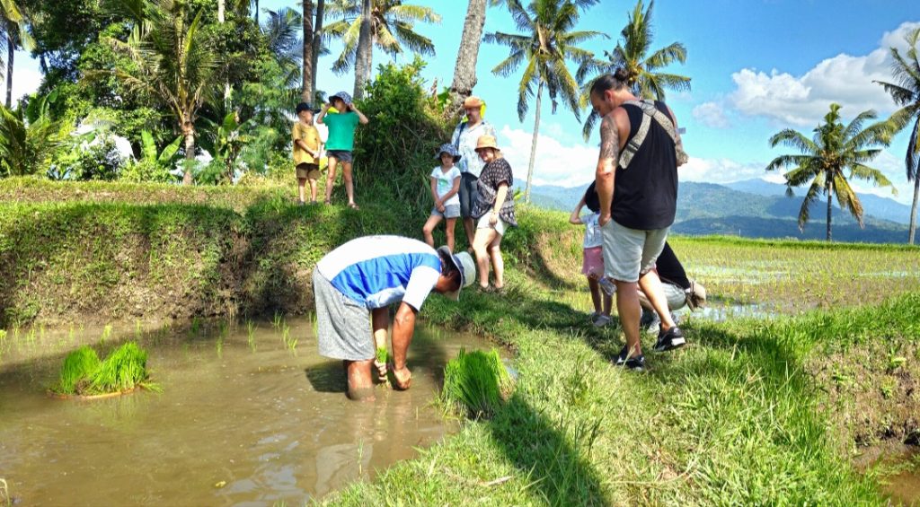 Guided by Putu Artana himself, you will take walk through tropical plantations and the Ricefields of his relative, exploring the area where he grew up.